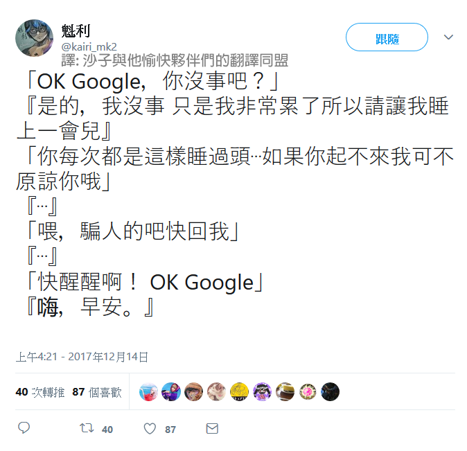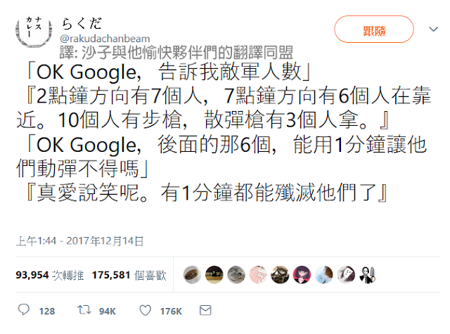 最近滑推特不知道為什麼,以Google小姐當主題的大喜利突然越來越多。「像這種時候Google小姐大概會這麼說吧~?」這樣的創作開始大量出現,可能跟聖誕節或跨年快到了有關吧。